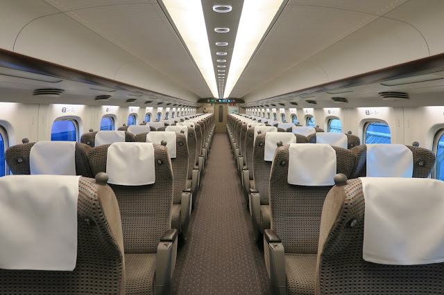 of the Green Car (first class) cabin on board the 10-car E5 Series Shinkansen Set