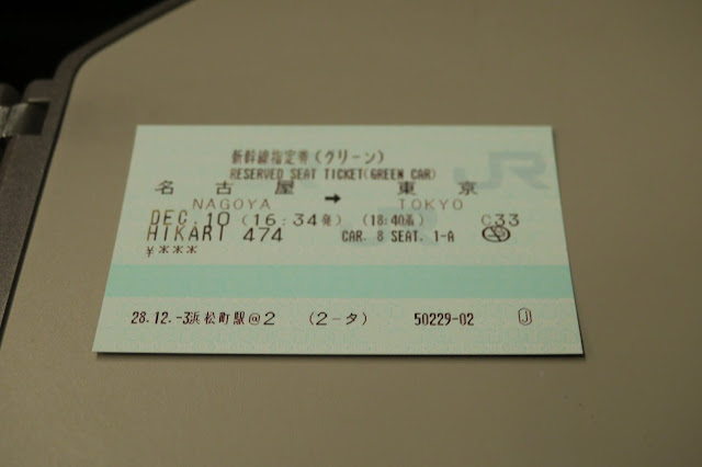My Green Car (first class) Shinkansen ticket for the return segment from Nagoya to Tokyo
