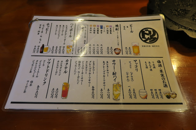 Reviewing the beverage sections of the main menu at Sumibiyaki Noge Horumon Daikichi (็ญ็ซ็ผ้ๆฏใใซใขใณ ใ ใใใก) located along Noge-cho 2-chome, Naka-ku, Yokohama