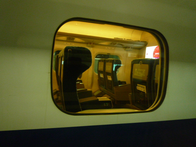We then boarded Green Car carriage No. 9 and settled into our seats No. 5A, 5B, 6A, and 6B for the short 39-minute journey to Tokyo. We then pulled out of Atami Station at 7.01 p.m., as planned. Here are some pictures and videos I took for the final sector between Atami and Tokyo. Also, this would be our final ride on the 300 Series Shinkansen, before their official retirement on 16 March 2012. The 300 Series Shinkansen was our most frequently-used Shinkansen type since we first came to Japan in September 2001.