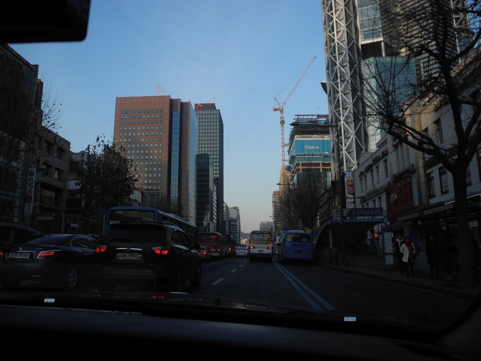 Driving along the busy morning roads of Jung-gu near Seoul Station