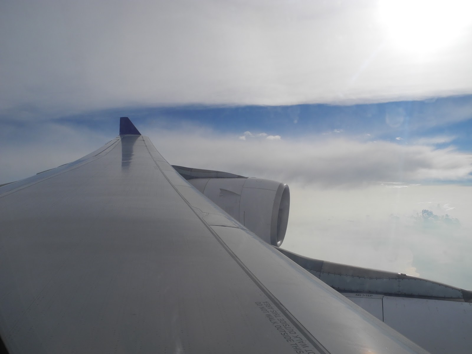 The view of the wing and the Rolls-Royce Trent 556A2-61 engines as we enter Thai airspace