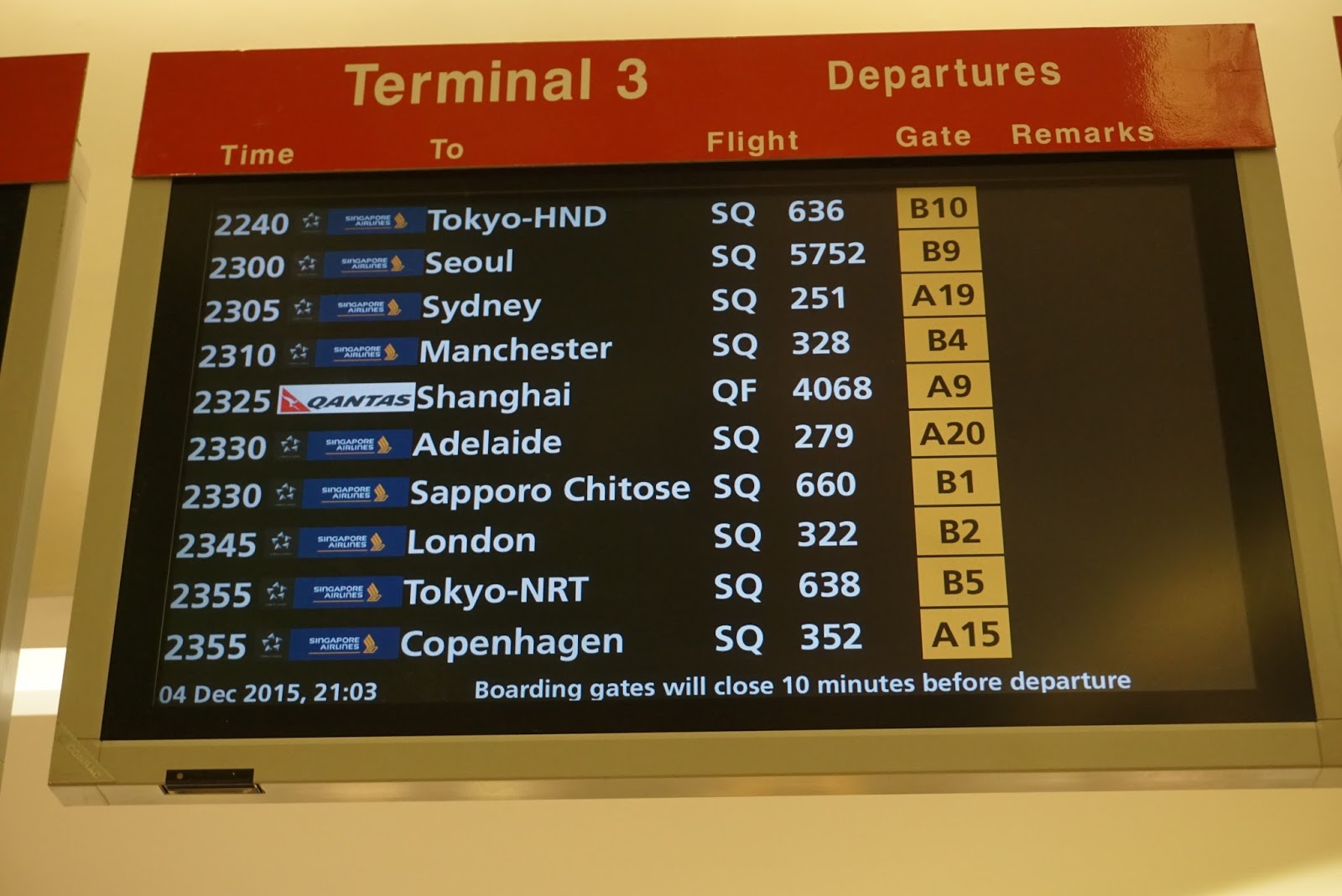 Airline: Singapore Airlines Flight No.: SQ 638 From: Singapore Changi Airport (SIN / WSSS), Singapore To: Tokyo, Narita International Airport (NRT / RJAA), Narita, Chiba, Japan Aircraft: Boeing 777-312/ER Registration No.: 9V-SWW Class: Business Class Seat No.: 21K Date: Friday, 4 December 2015 After spending approximately 1 hour 30 minutes of having some refreshments and using our electronic devices inside the Silver Kris Lounge at Singapore Changi Airport Terminal 3, the clock was finally showing 10.40 p.m.. Though boarding for Singapore Airlines flight SQ 638 bound for Tokyo (Narita) would commence in 45 minutes' time, we decided to pack away our belongings and leave the Silver Kris Lounge for Gate No. B5 as we wanted to explore some duty-free shops on the way. The entire walk from the Silver Kris Lounge to Gate No. B5 in Singapore Changi Airport Terminal 3 took not more than approximately 25 minutes, stopping at some duty-free shops along the way.