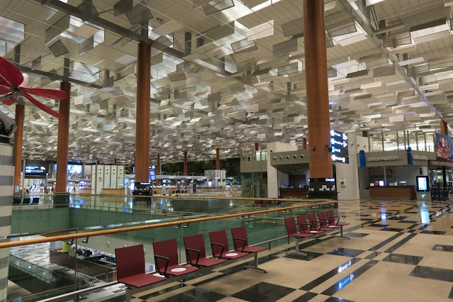 Entering the departures and check-in level at Singapore Changi Airport Terminal 3 in the predawn hours of the early morning