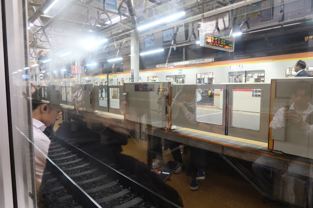 Finally arriving at the Tokyu Toyoko Line, Minatomirai Line & Tokyu Shin-yokohama Line station platforms at Shibuya Station during the early evening rush hours